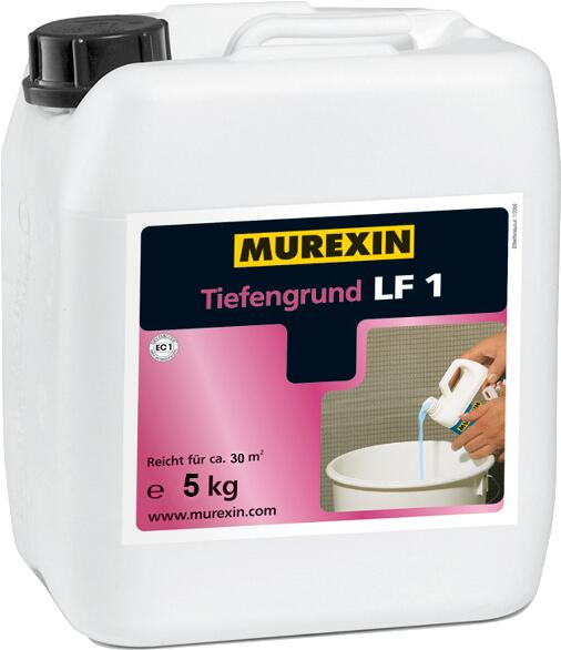 Murexin LF 1 mélyalapozó - 5 kg - kék - vizes bázisú műgyanta-diszperzió - nedvességzáró és nedvszívás-kiegyenlítő, de nem párazáró bevonat - nedvszívó alapfelületek (mészcement- és cementvakolatok, beton, égetett agyag stb. ) előkezelésére - cement, cementdiszperzió, diszperziós kiegyenlítő masszák, csemperagasztók, kenhető vízszigetelések felhordása előtti alapozásra - pormegkötésre - tapadás javítására - felhasználásra kész - anyagszükséglet: kb. 150 g/m2 - feldolgozási hőmérséklet: minimum +5°C - száradási idő: - szívóképes aljzaton: kb. 15 perc - nedvességre érzékeny aljzaton: kb. 12 óra - oldószermentes
